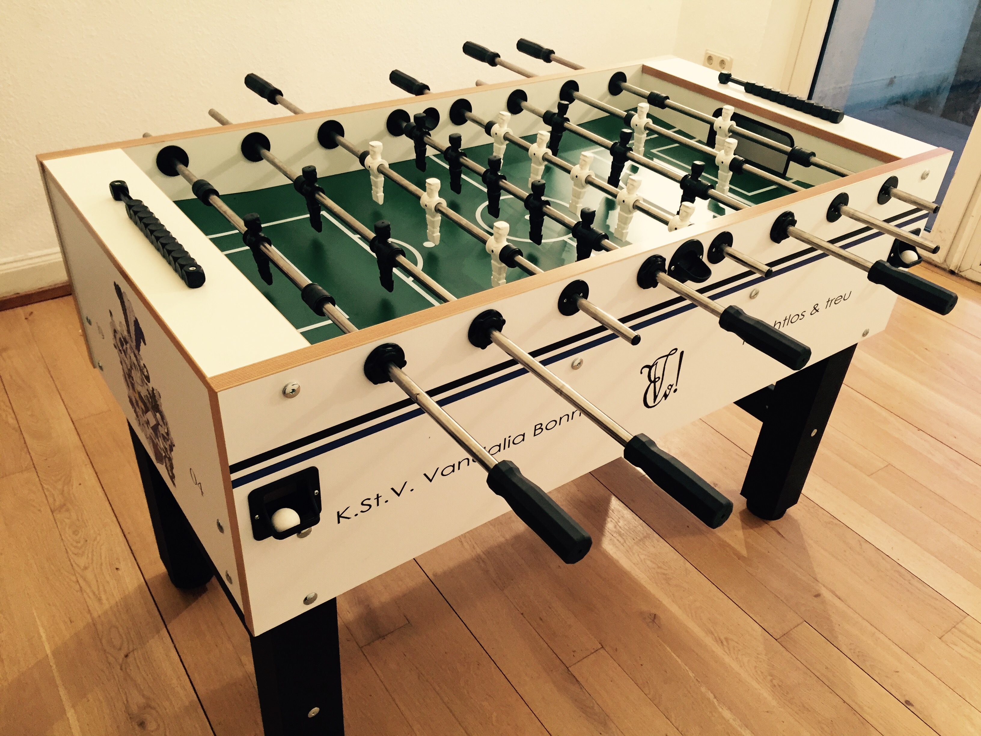 Im Erdgeschoss im Raum neben der Bar besitzen wir einen Kicker auf dem wir fleißig an netten Abenden zusammen spielen. Dieser Kicker wurde 2016 angeschafft und von uns in einer besonderen Art und Weise verziert.